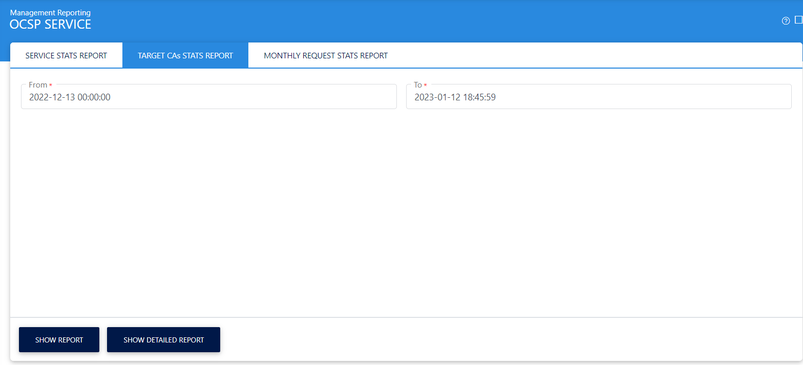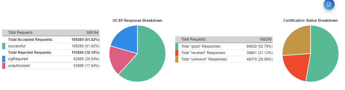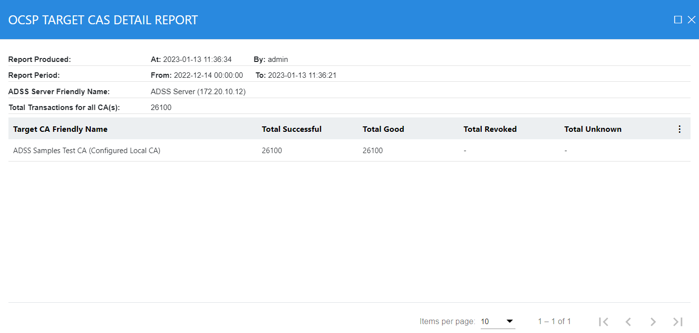 Clicking on View Detailed CA Report button will show the total number of successful, good, revoked and unknown requests for all the CAs: