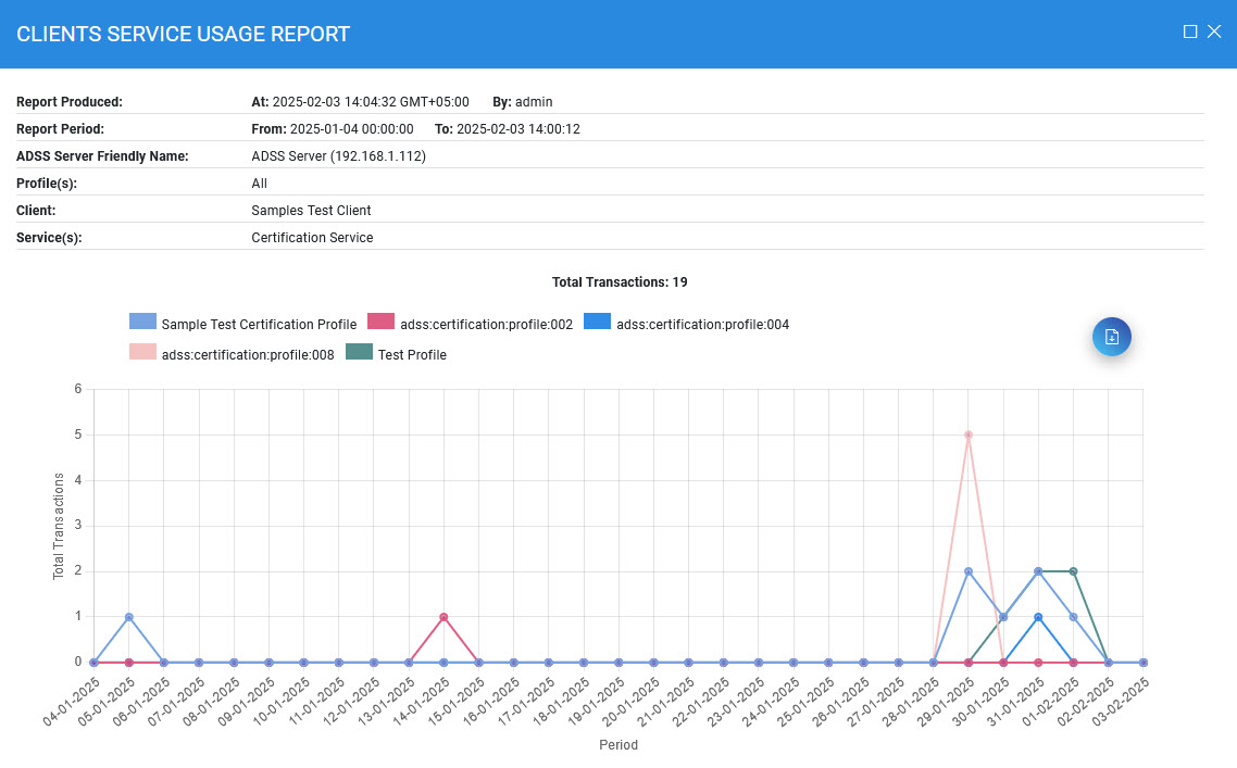 Clicking on the Show Report button by the user displays the report for the selected service and its configured profiles: