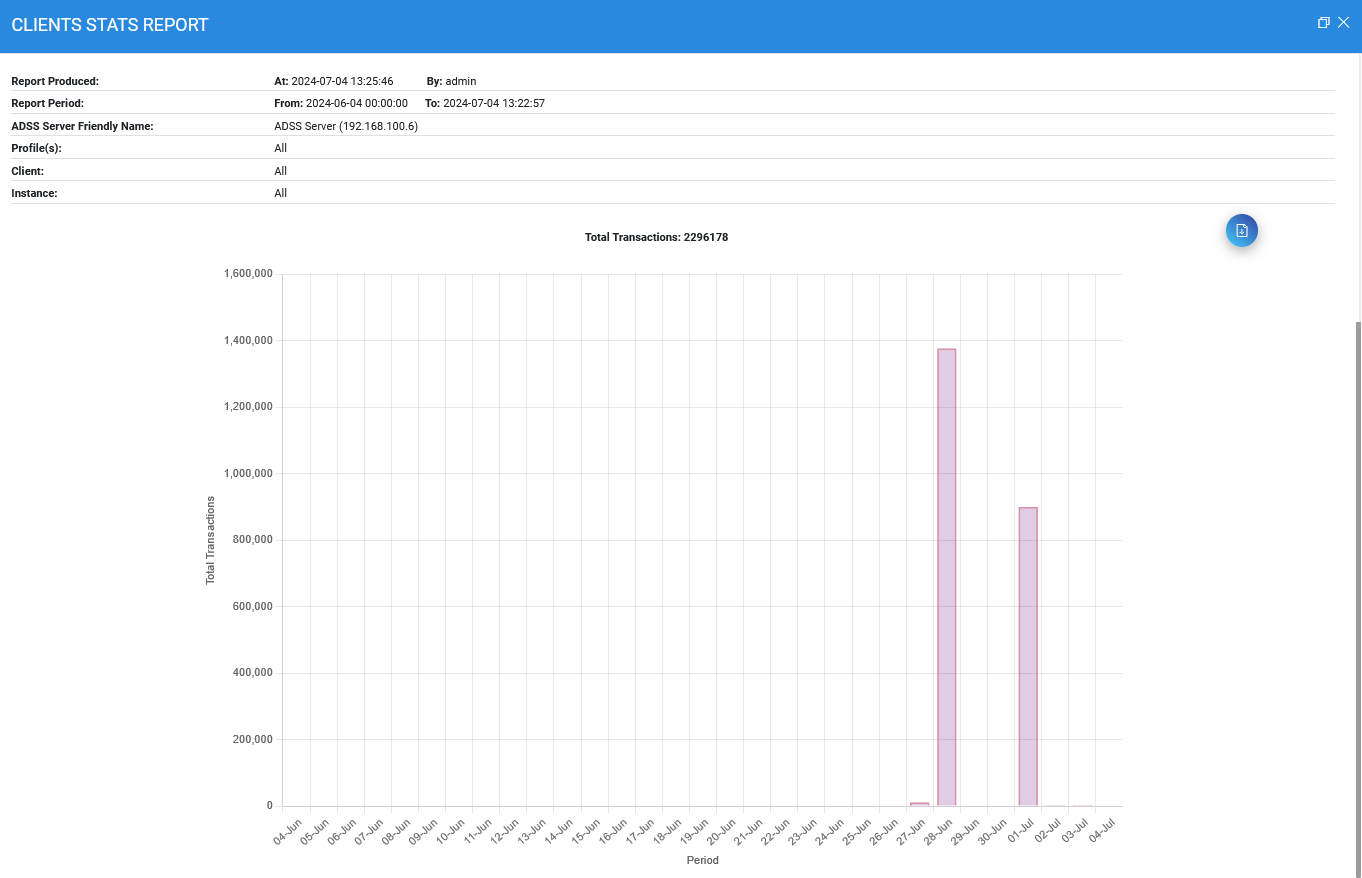 The Instance drop-down will contain the Machine Name/IP of the ADSS Services instances. If the ADSS Service is installed in a load-balanced mode, the drop-down will list all the instances. Instance drop-down will also contain an option 'All' to generate the report for all the instances. |