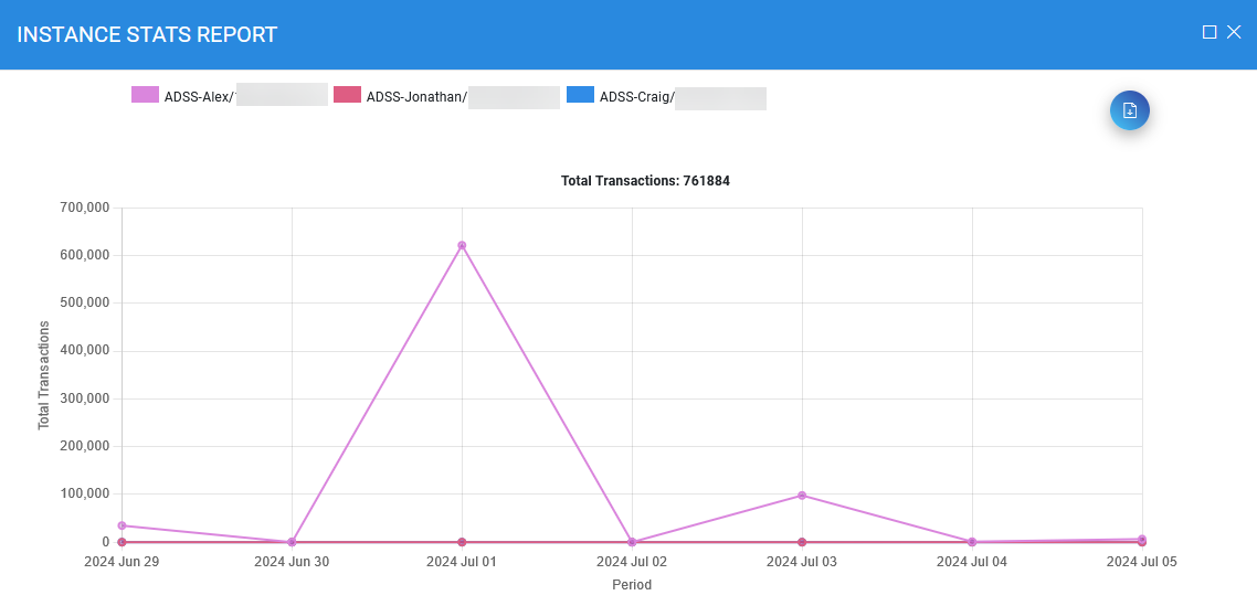The Instance States Report will give us an idea about the usage of all the Signing Service instance running on the ADSS Server over a specific period of time. By clicking on the Instance Stats link from top of the page, following screen will be displayed: