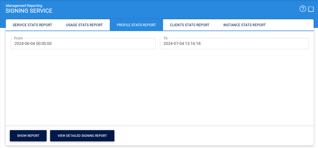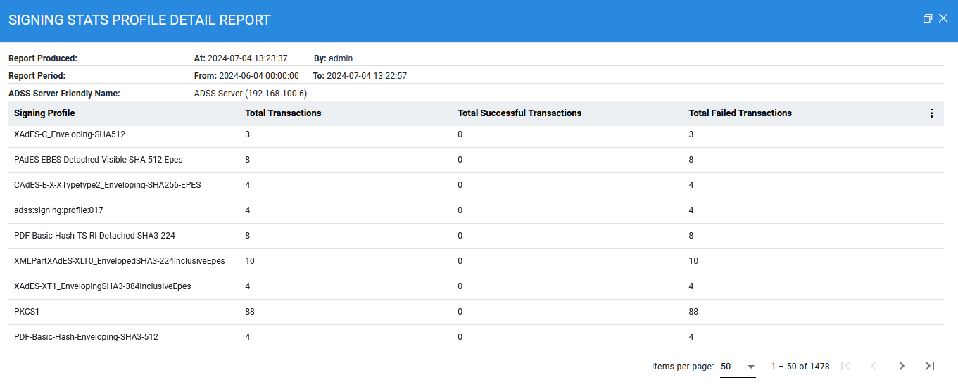 Clicking on the download icon allows the user to export the report in PDF format. Clicking on the 'View Detailed Signing Report' button displays the following screen: