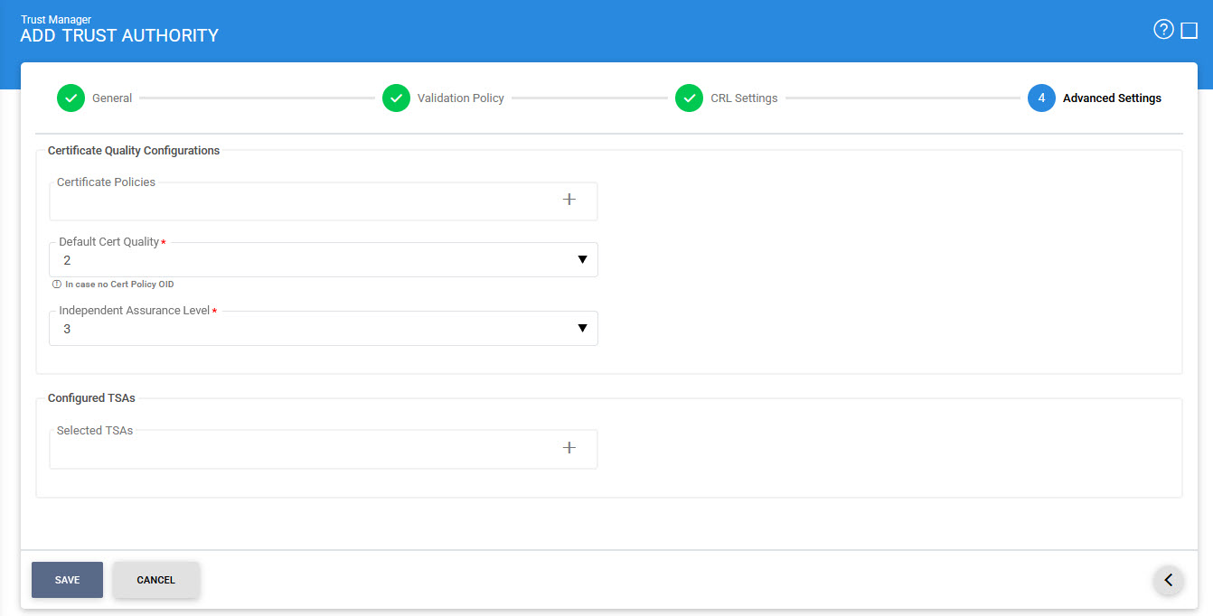 - When a CA has a one or more TSAs configured here, these override any TSAs that are defined in Signing or Verification Profiles.