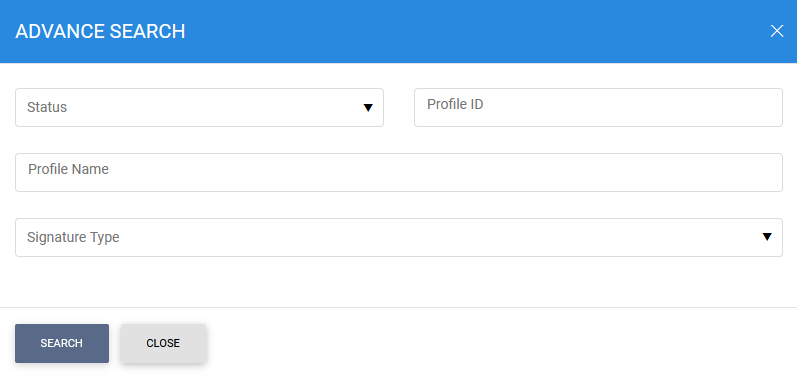 Clicking on the Advance Search icon on Signing Profiles main page will display following screen:
