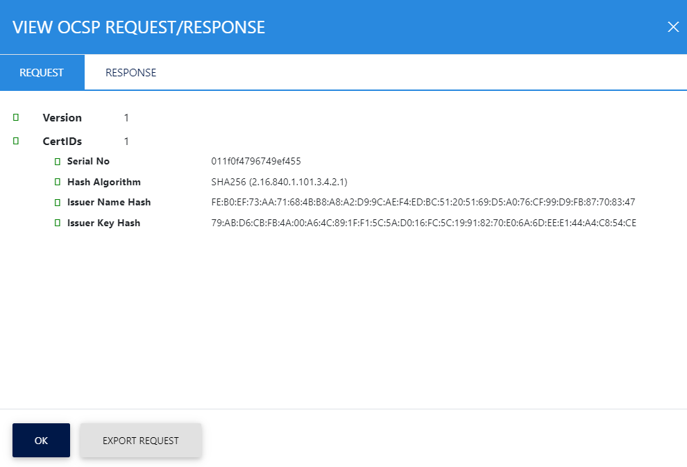 Click on the relevant export button to export the OCSP request/response on the physical drive.