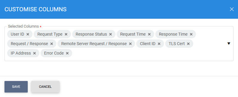 Clicking on the Customise Columns button on CSP Transactions Log Viewer displays following screen: