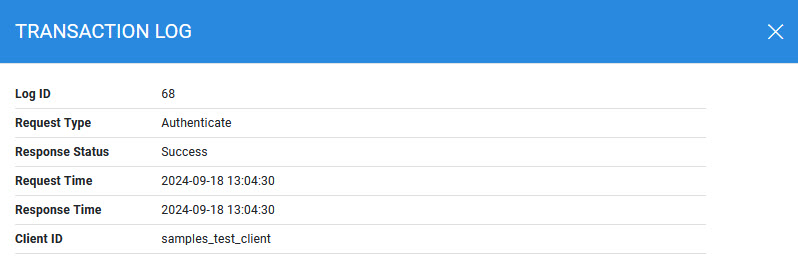 Clicking on the link for Log ID shows detail of the selected transaction as shown below: