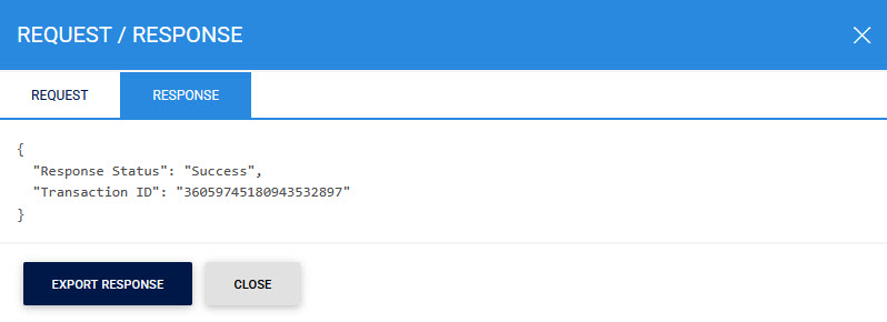 Clicking the View link under the request/response column shows the JSON request and response for the selected RAS transaction in different tabs: