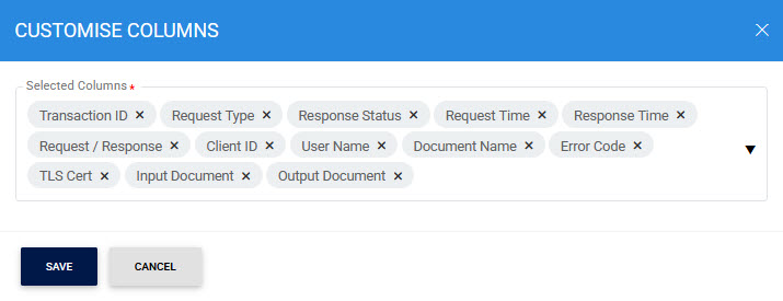 Clicking on the Customise Columns button on Go>Sign Transactions Logs displays following screen: