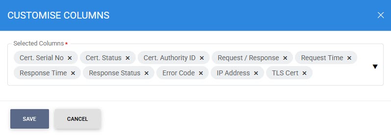 Clicking on the Customize Columns button on OCSP Repeater Transactions Log Viewer displays following screen:
