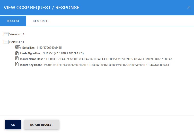 Click on the relevant export button to export the OCSP Repeater request/response on the physical drive.