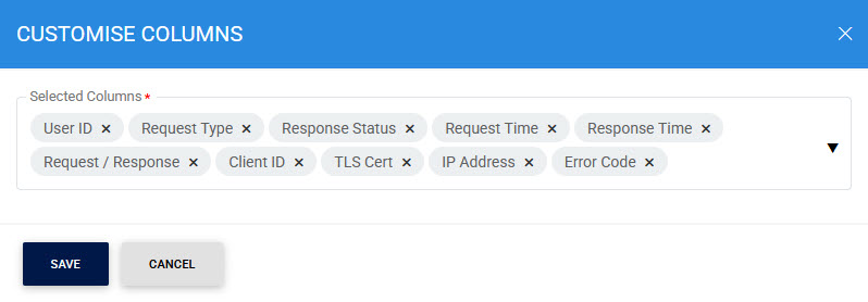 Clicking on the Customise Columns button on SAM Transactions Log Viewer displays the following screen: