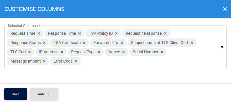 Clicking on the Customise Columns button on TSA Transactions Log Viewer displays following screen: