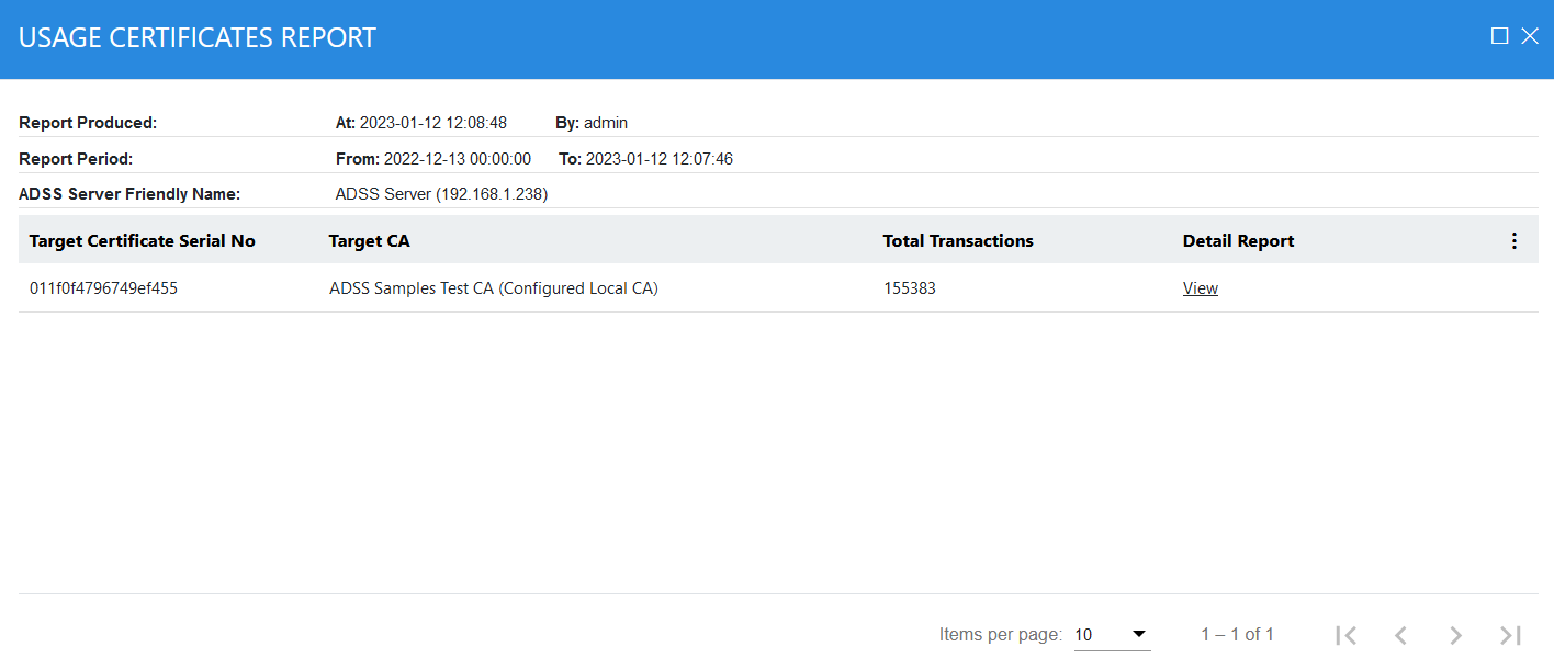 This type of report is useful for reviewing which clients are making request to your service and who the frequent clients are. Alternatively it can also allow you to check which target certificates are being validated the most: