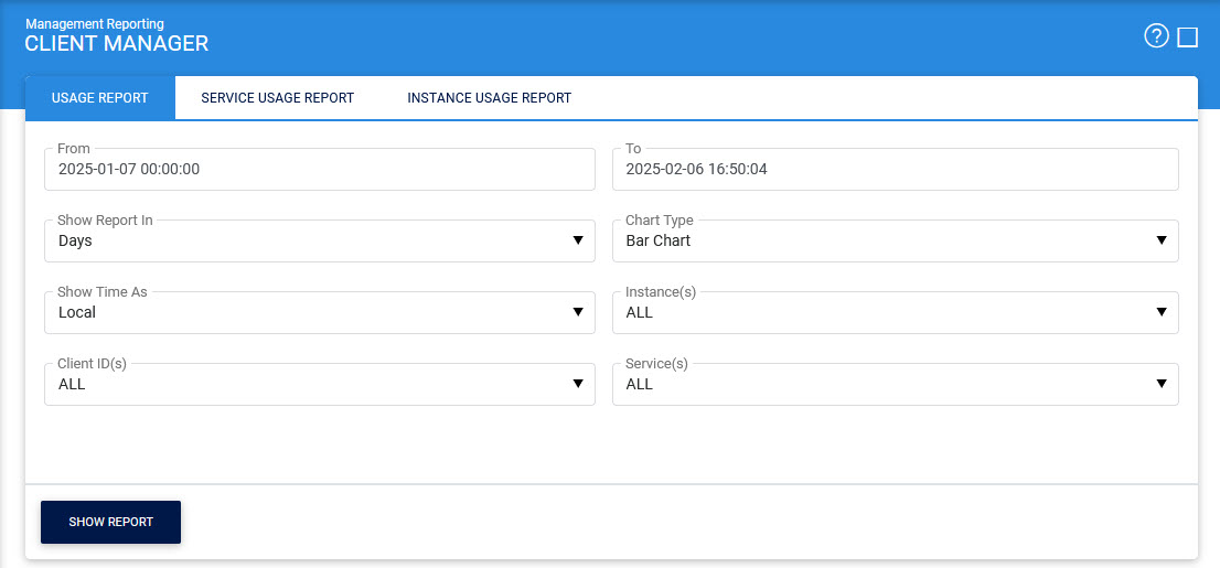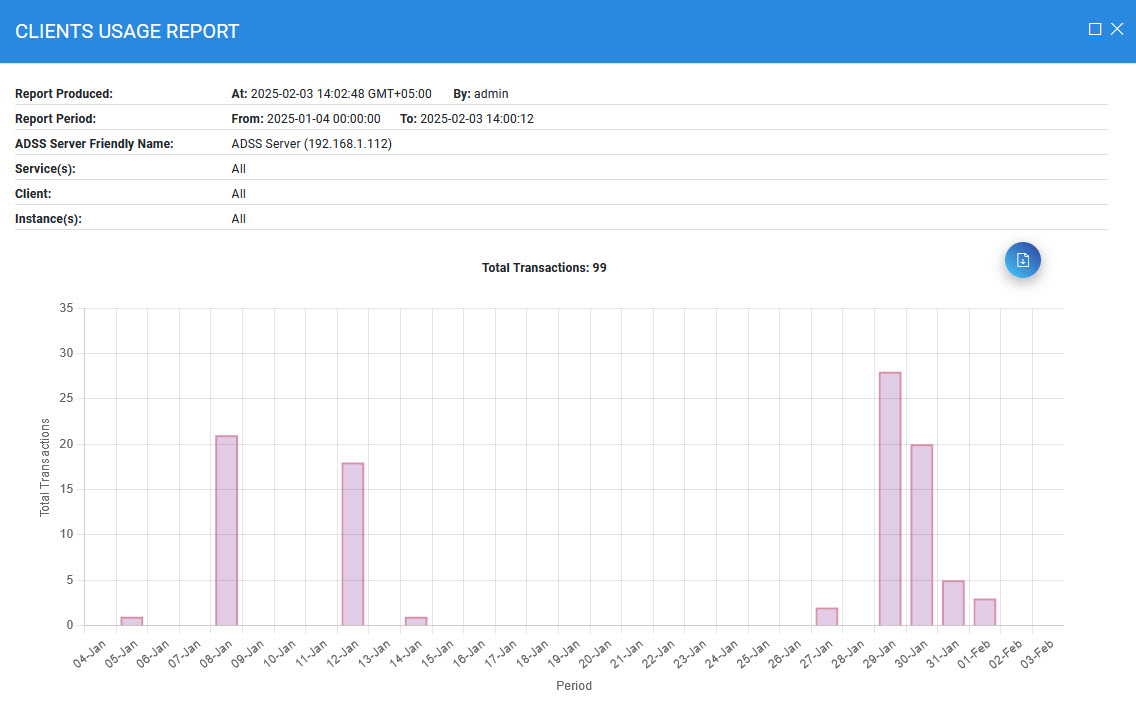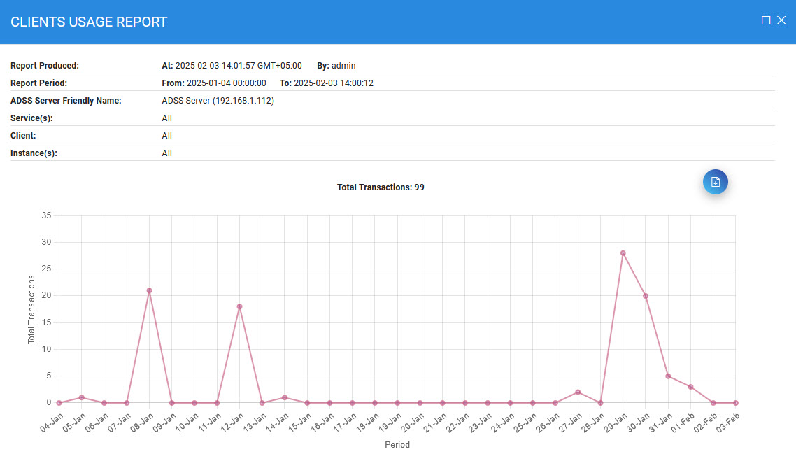 By selecting the Usage Report link from the top of the page, the following screen will be shown. By default it shows the below transaction details: