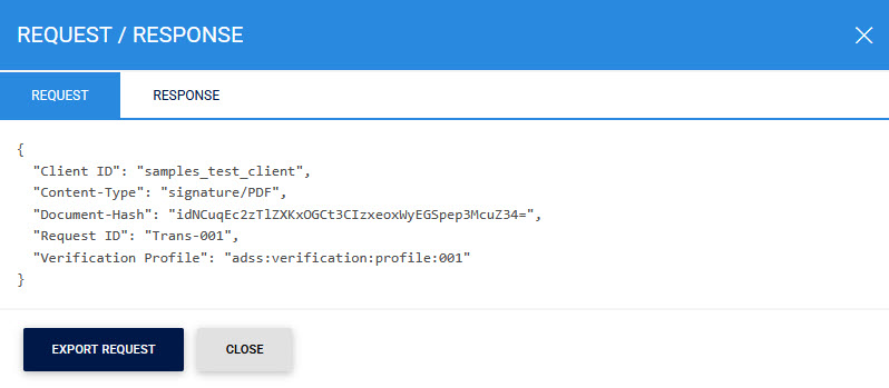 Clicking on the Request/Response link will display the details of request and response against selected report.