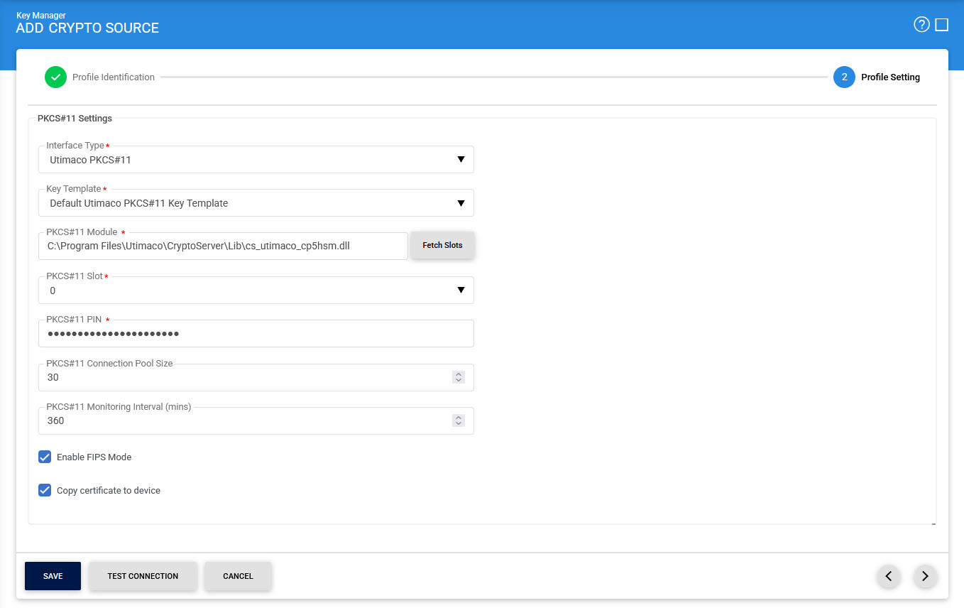 This drop-down will allow the user to select the interface type for the UTIMACO crypto source vendor i.e. either Utimaco PKCS#11 or Utimaco EN 419221-5. Both are explained below: