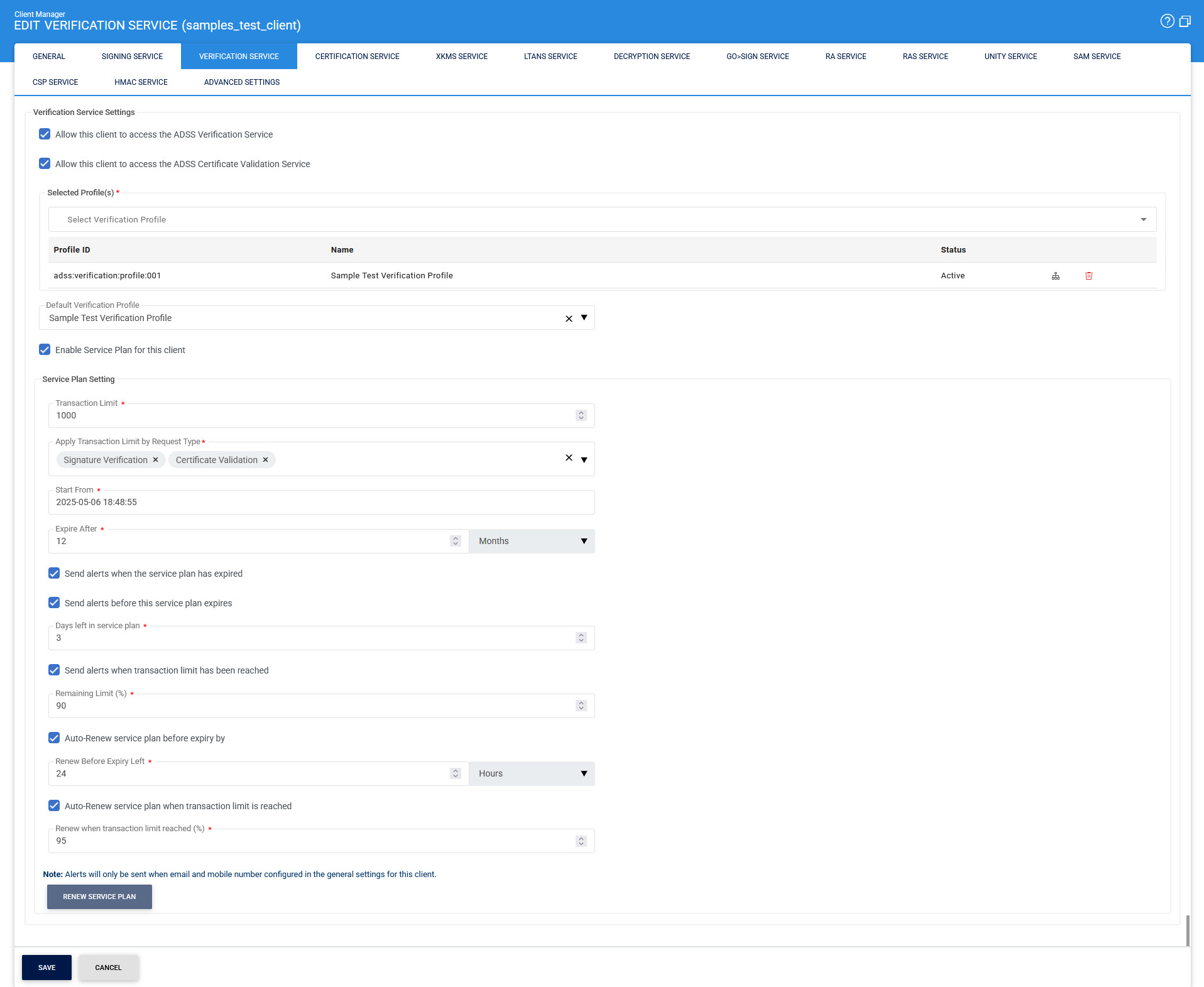- Assign which Verification Service profiles can be used by this client