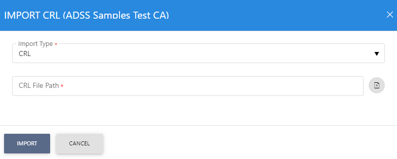 You can click this button to manually import the CRL from a local/network path. The user can import DER, Base64 or PEM encoded CRL.