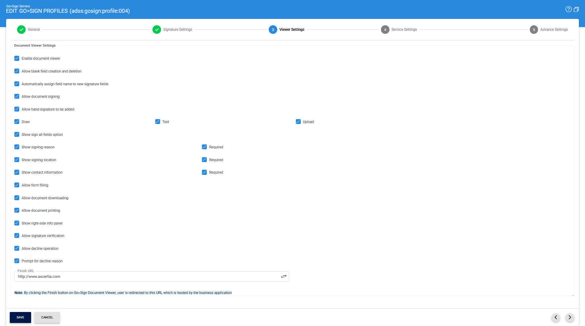 This page is used to define the configurations that are going to be used by Go>Sign Viewer.