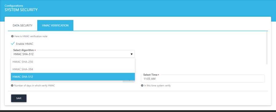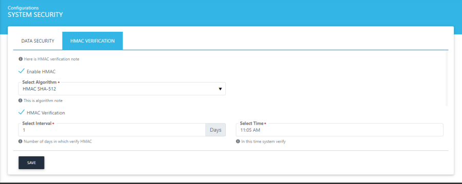 The HMAC verification check box enables the system to verify the data integrity of the entire data of the application.