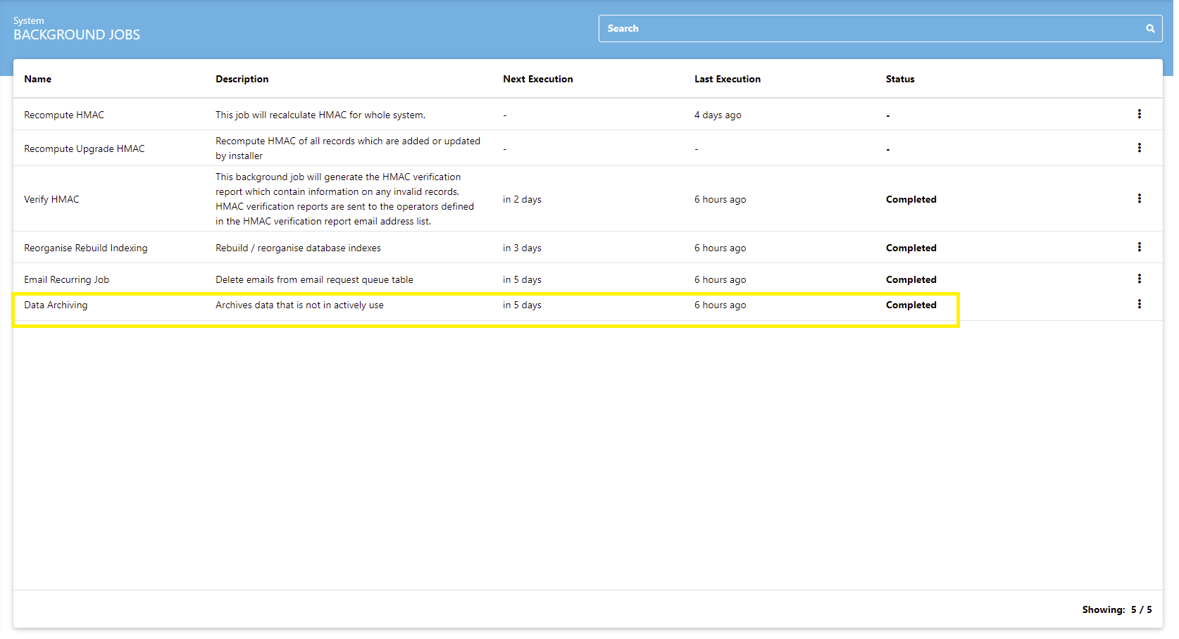 - Once the auto archiving is enabled, a background job will be executed which will archive the data based on the configurations.