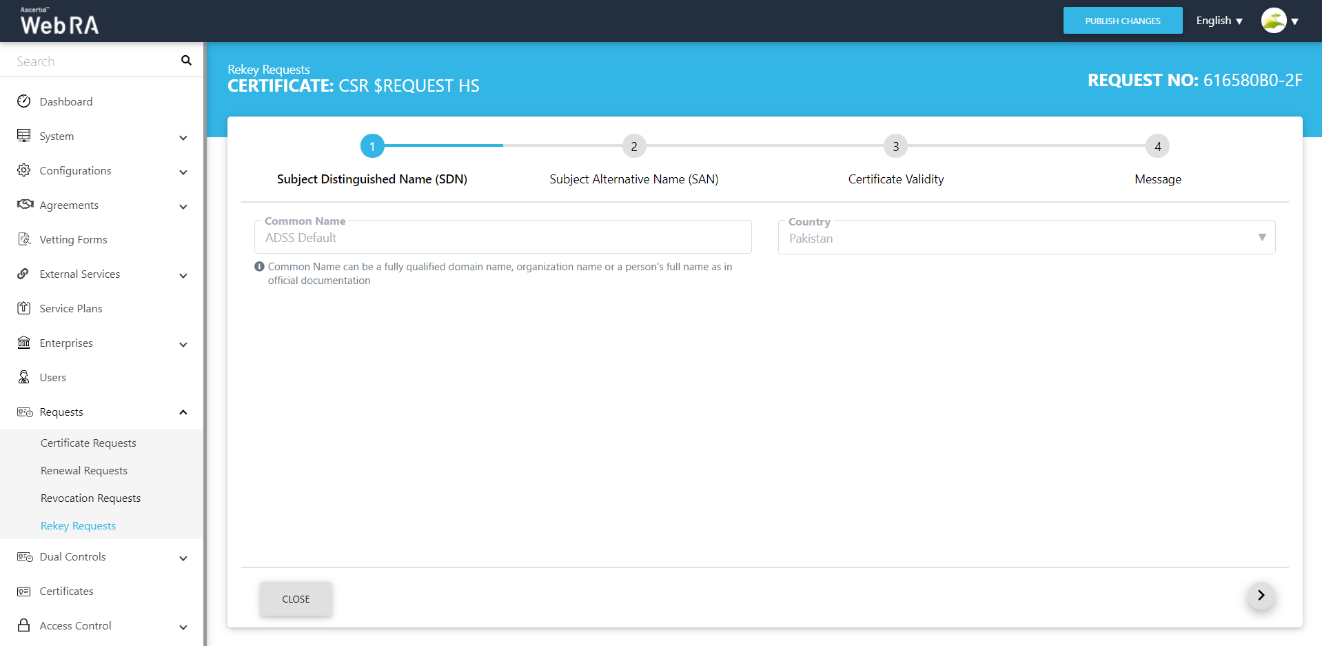 - Certificate Rekey - A request that is sent to Admin/Enterprise RAO to rekey an existing certificate of a user.