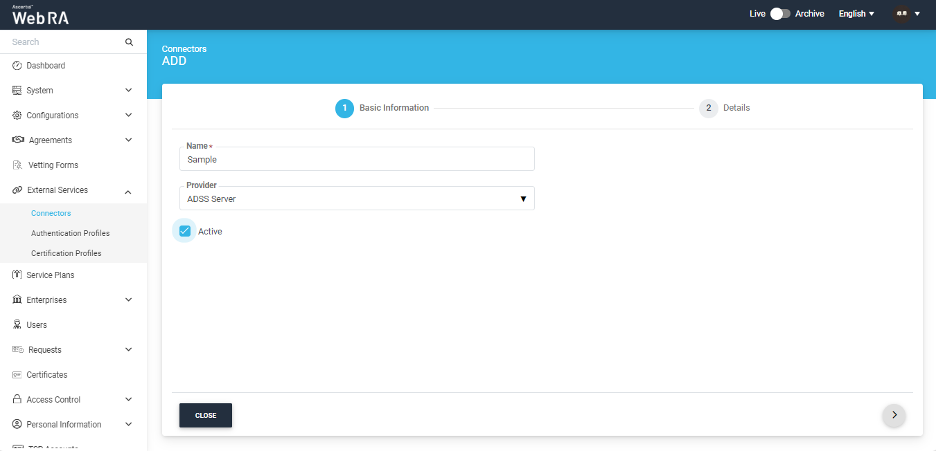 A connector is required in ADSS Web RA Admin to communicate with the respective ADSS Server instance.