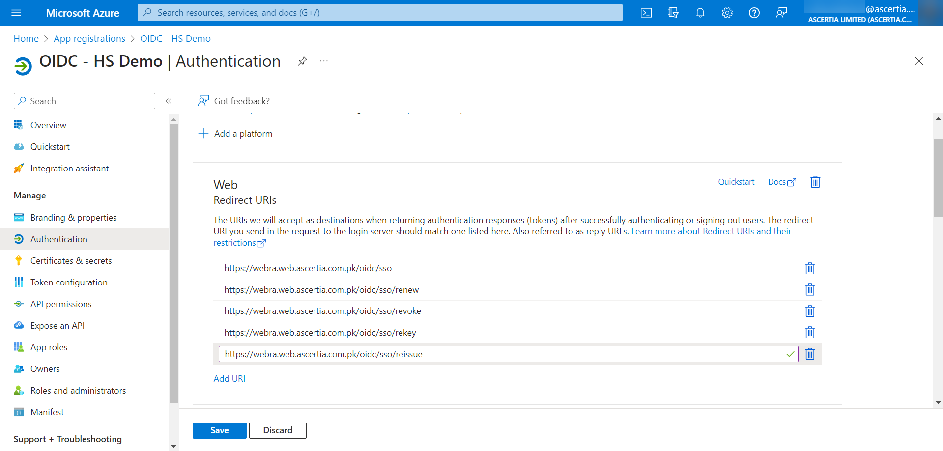 Enter the ADSS Web RA URL and then append /oidc/sso/renew after it, https://webra.web.ascertia.com.pk/oidc/sso/renew
