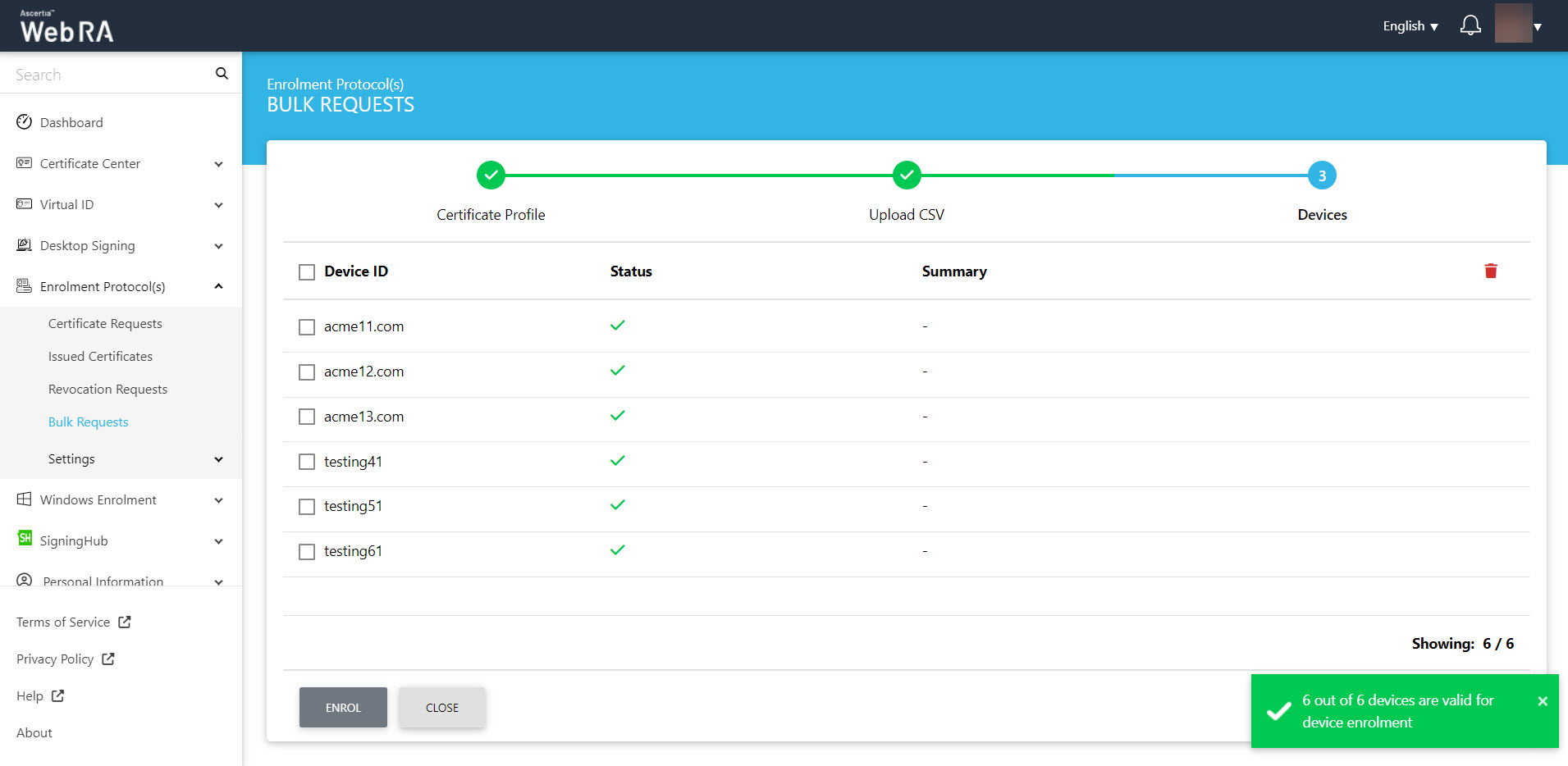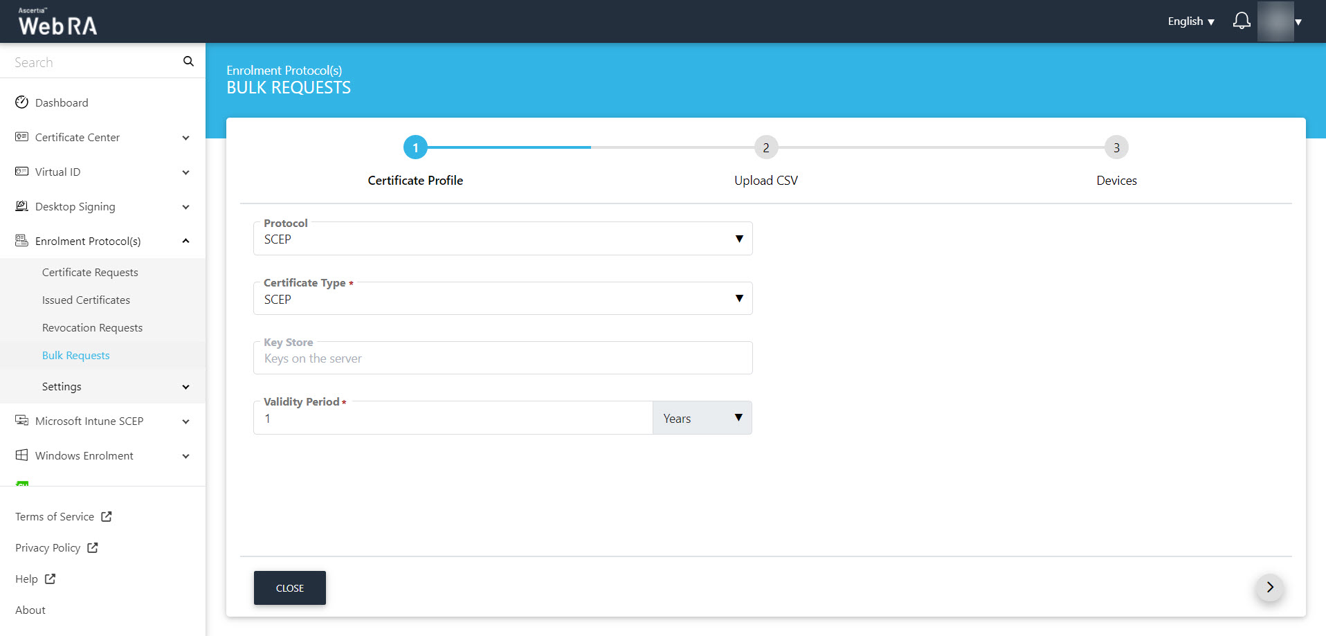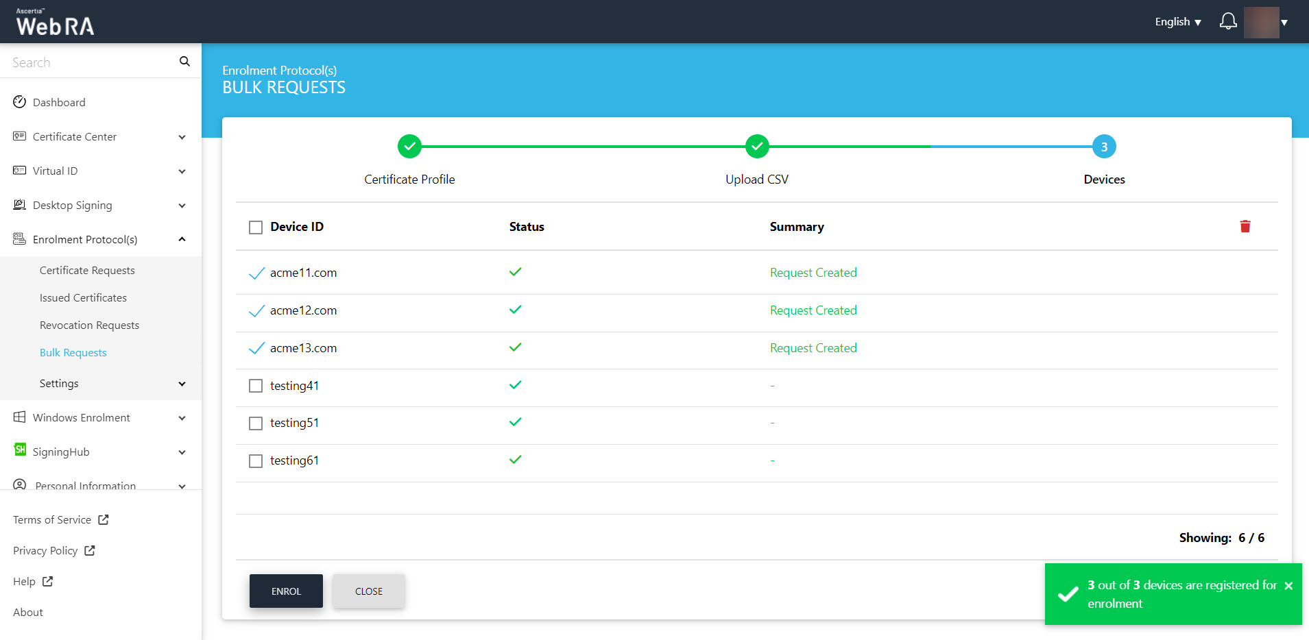 - Expand Enrolment Protocol(s) > Bulk Requests.