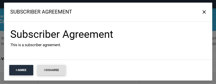 Note: The Subscriber Agreement dialog will only appear if the settings have been configured with this user profile.