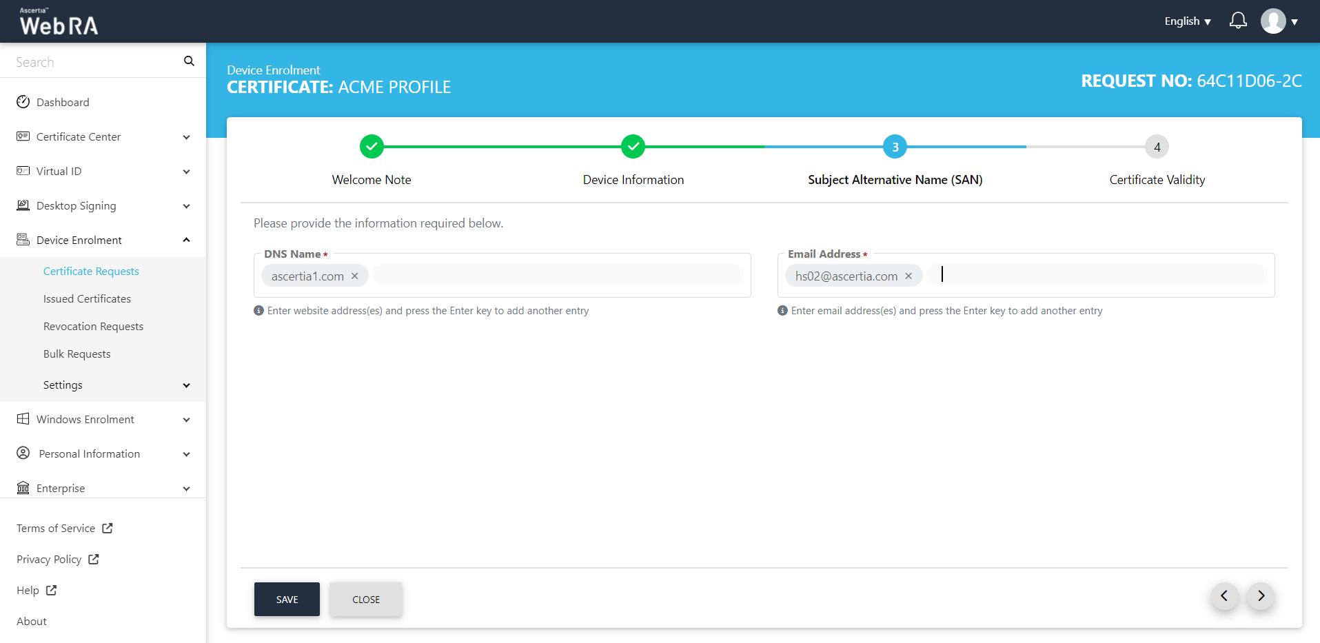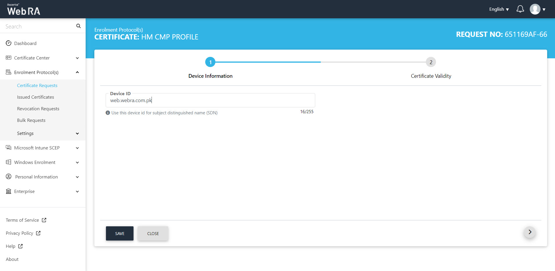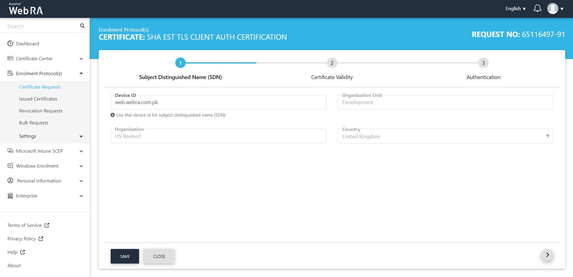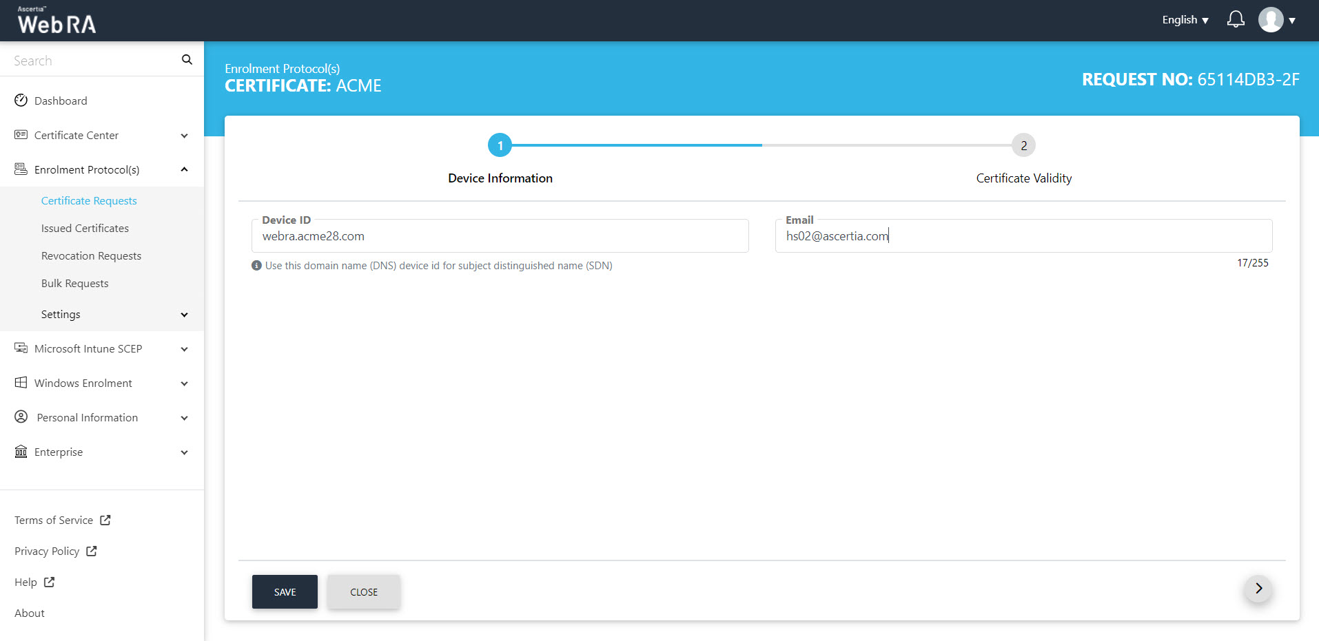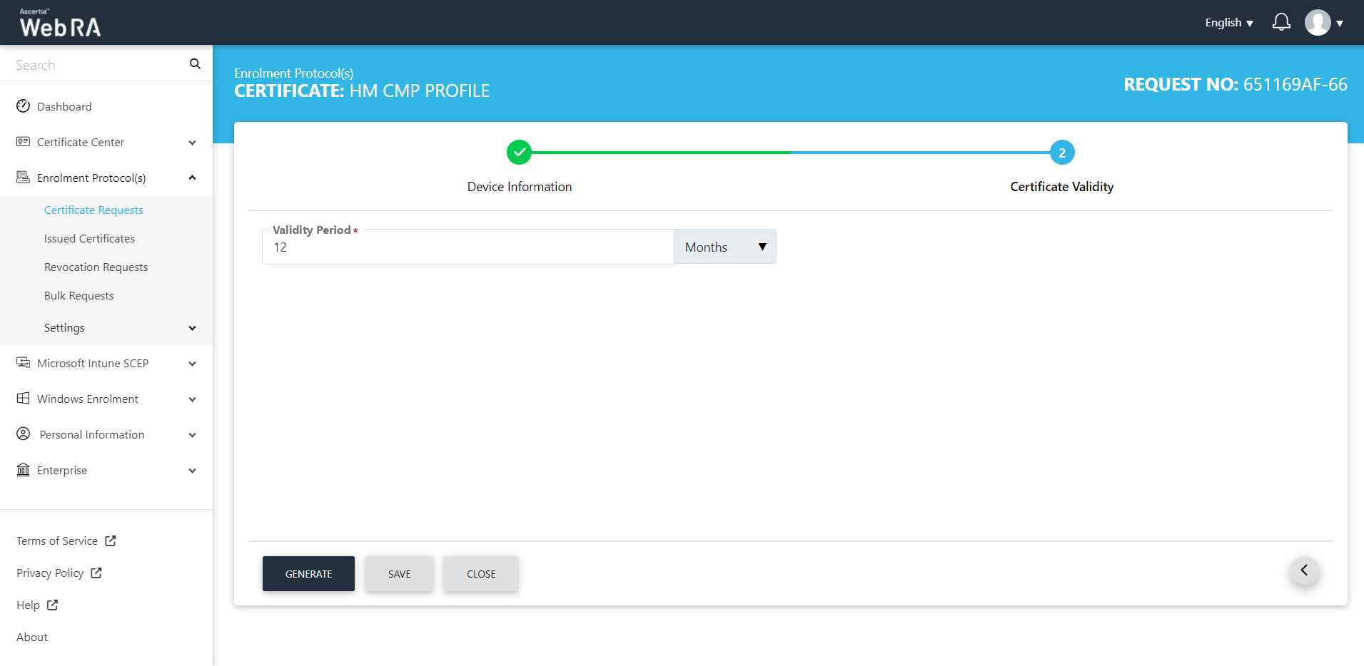 Once you have set-up device enrolment, follow these steps to create a certificate request: