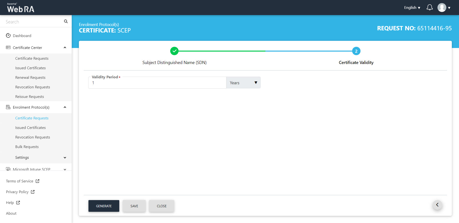 - Enter the Certificate Validity.