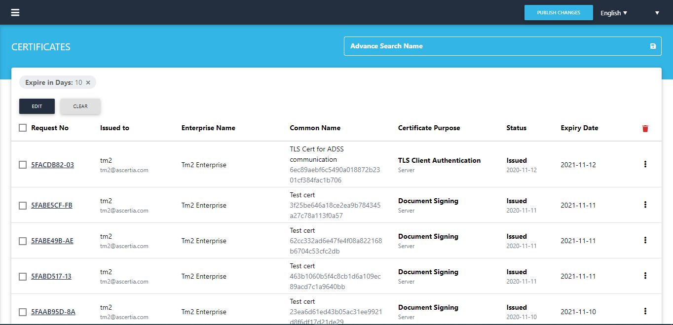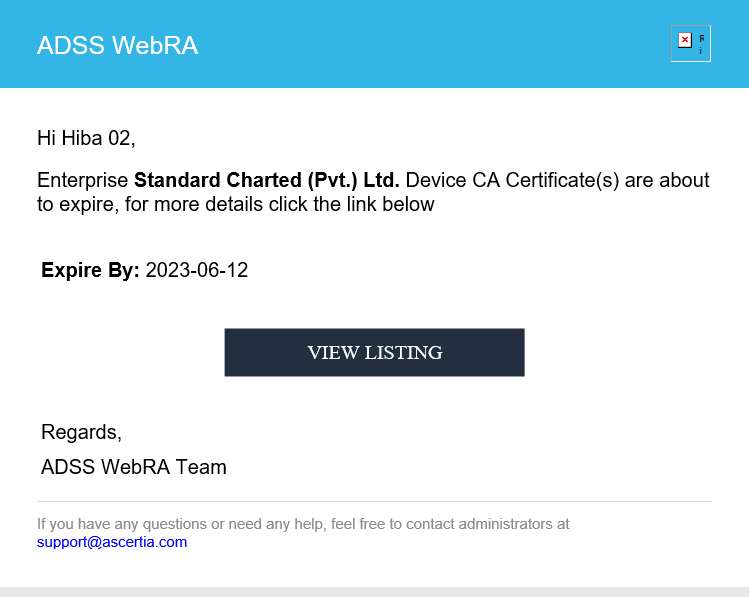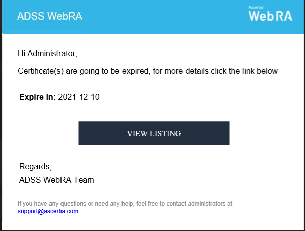Once a background job is completed after the configured time interval selected above, an email will be sent to the operator to view certificates that are about to expire (based on the selected configurations).