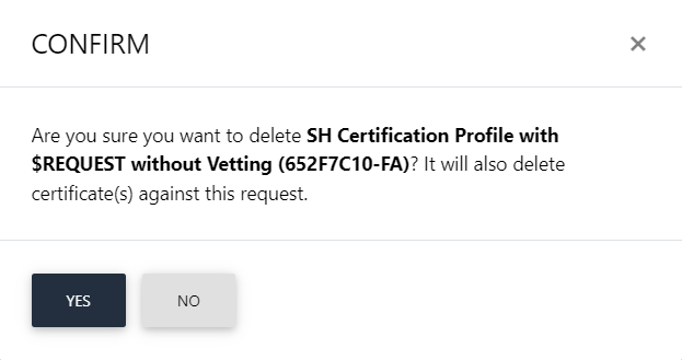 If this policy is enabled, when an operator deletes a certificate request, the following permanent deletion dialog will appear: