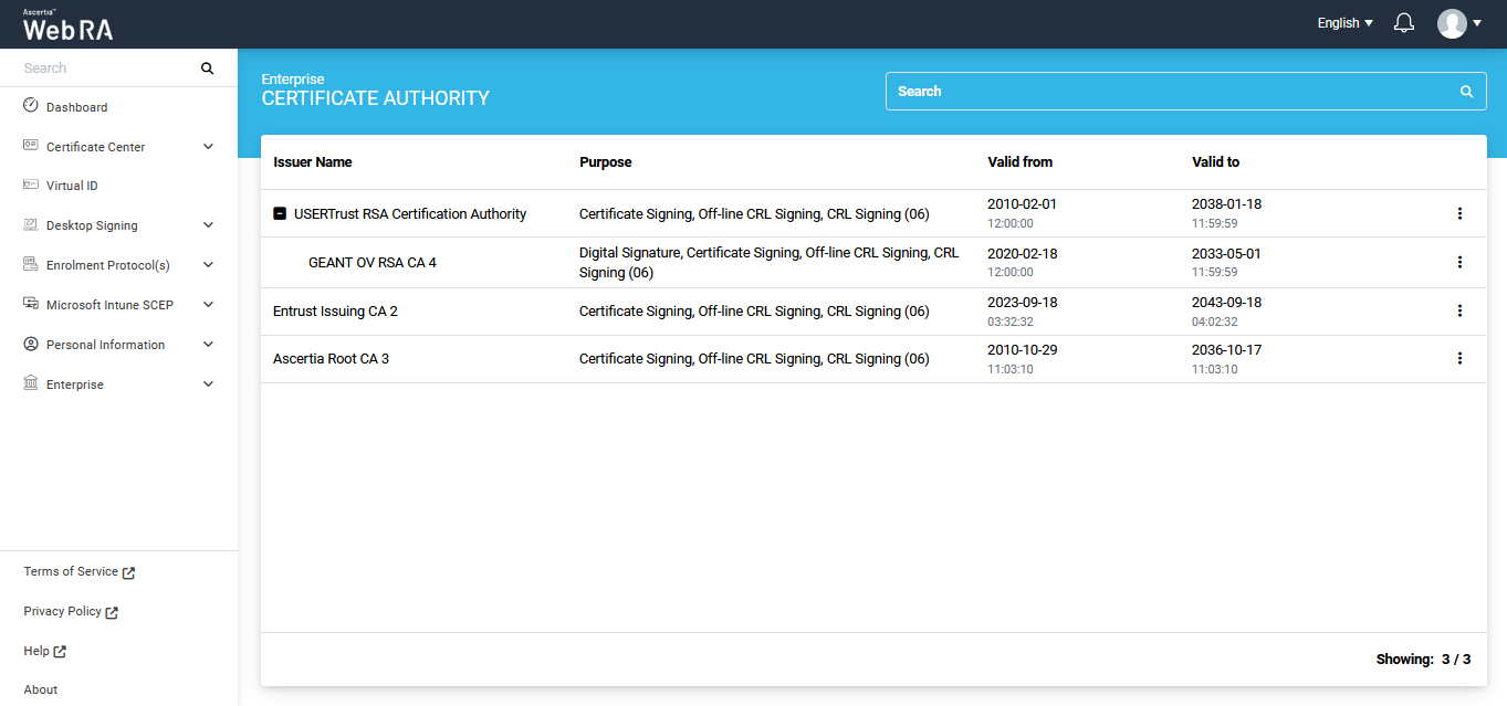 Once you click the Details button, you will be redirected to the Certificate Authority tab under the Enterprise module.