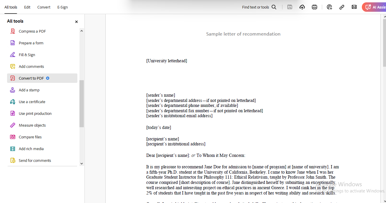 6. Open the PDF Document
