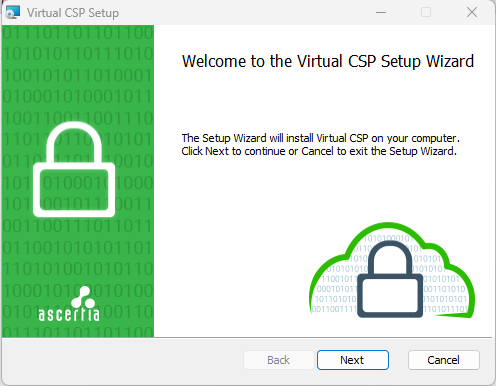 Install the Virtual CSP application by running the ‘Virtual CSP’ setup file. Double-clicking the setup file will open the setup dialog, where you can complete the installation.