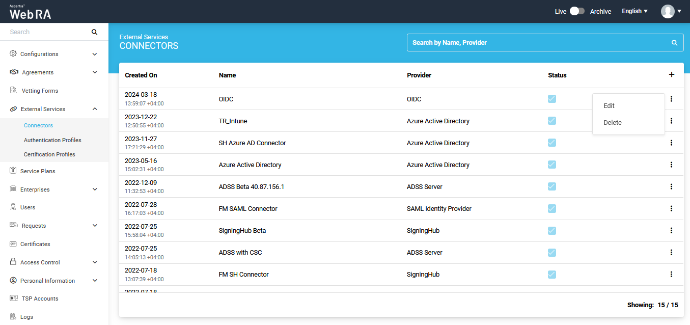 - Click the Connectors from the left menu.