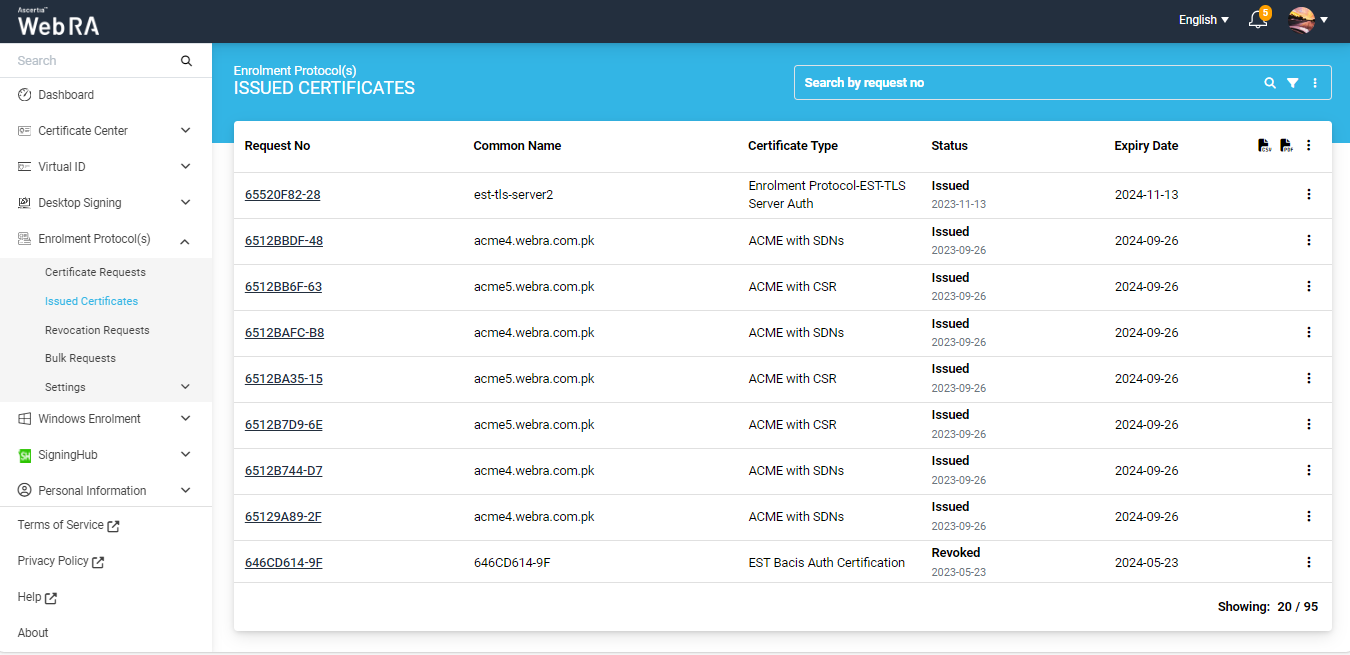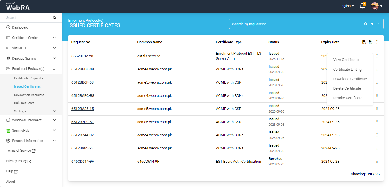 You can view, download, revoke or delete a certificate.