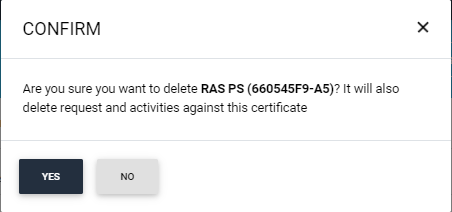 - A confirmation dialog will appear as displayed below. It will also delete certificate (s) against this request,