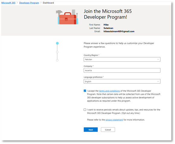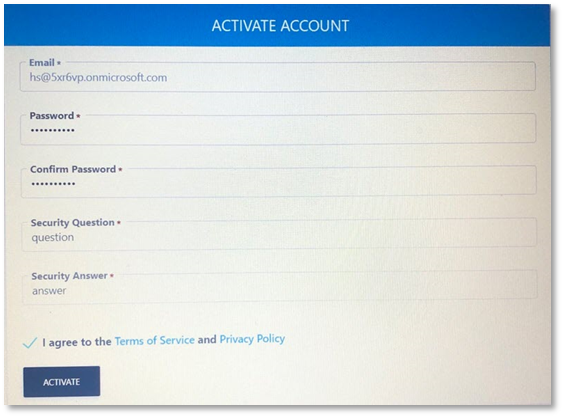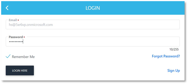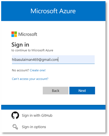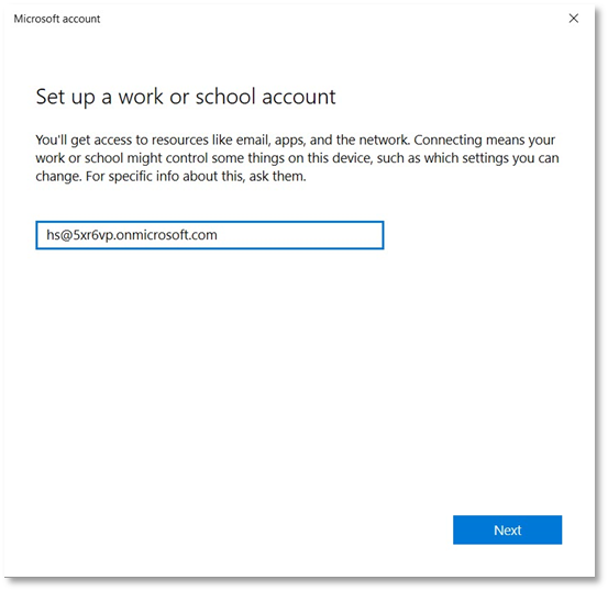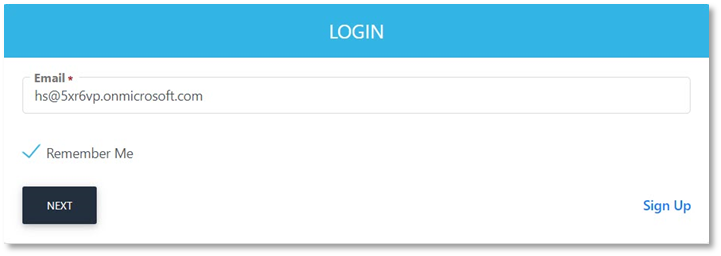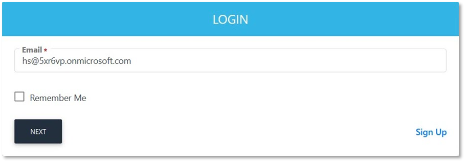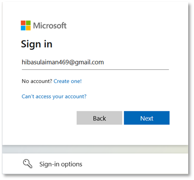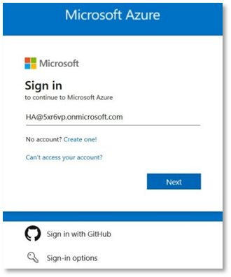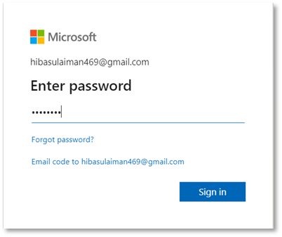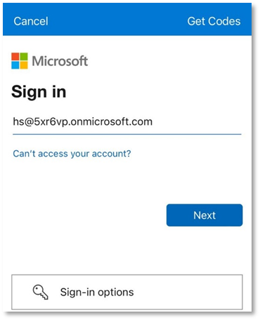 - Entering your email e.g. HS@5xr6vp.onmicrosoft.com