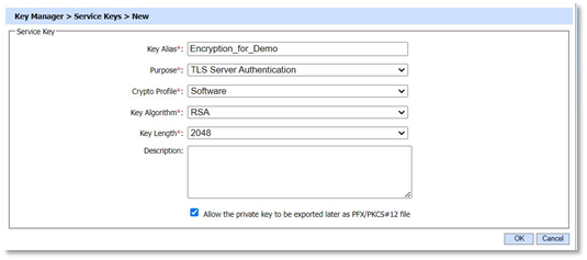 - To generate a new key press the New button in the main Service Keys page.