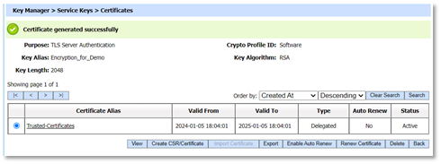 In this case, Key Manager will automatically communicate with the ADSS Local CA and the certificate will be issued and imported within Key Manager without further manual intervention.
