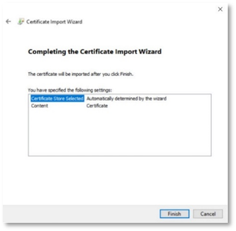 - To complete the Certificate Import Wizard, click Finish.