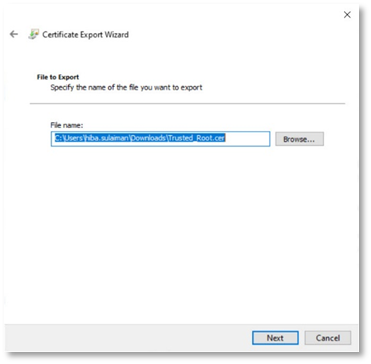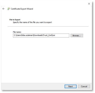 - In the next step, specify the name of the file you want to export e.g. Trust_Cert and click Next.