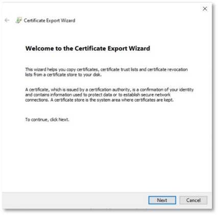 - You can export the certificate as a .CER file, and then click Export.