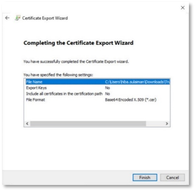 - Click Finish to complete the Certificate Export Wizard.