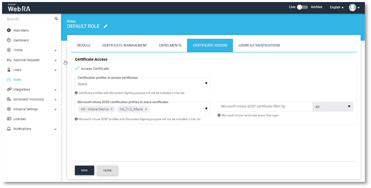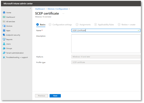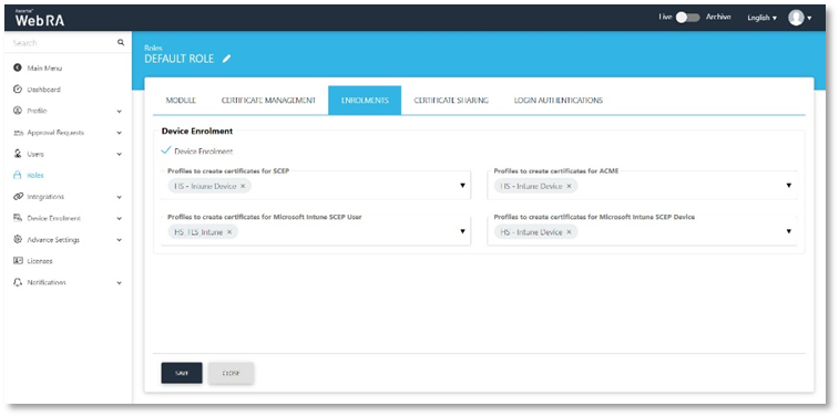 - Create a default role with Microsoft Intune SCEP profile.