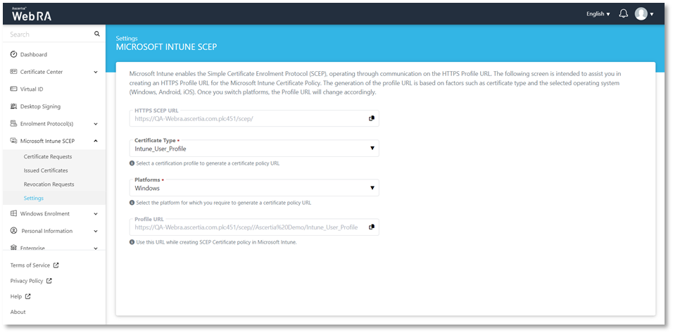 Before configuring the Microsoft Intune SCEP feature, the following pre-requisites from the ADSS Web RA Server are necessary: