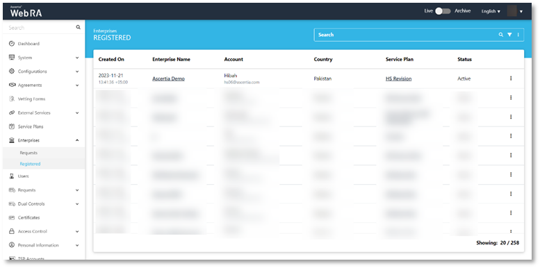 View Certificates (from ADSS Web RA Web Portal)